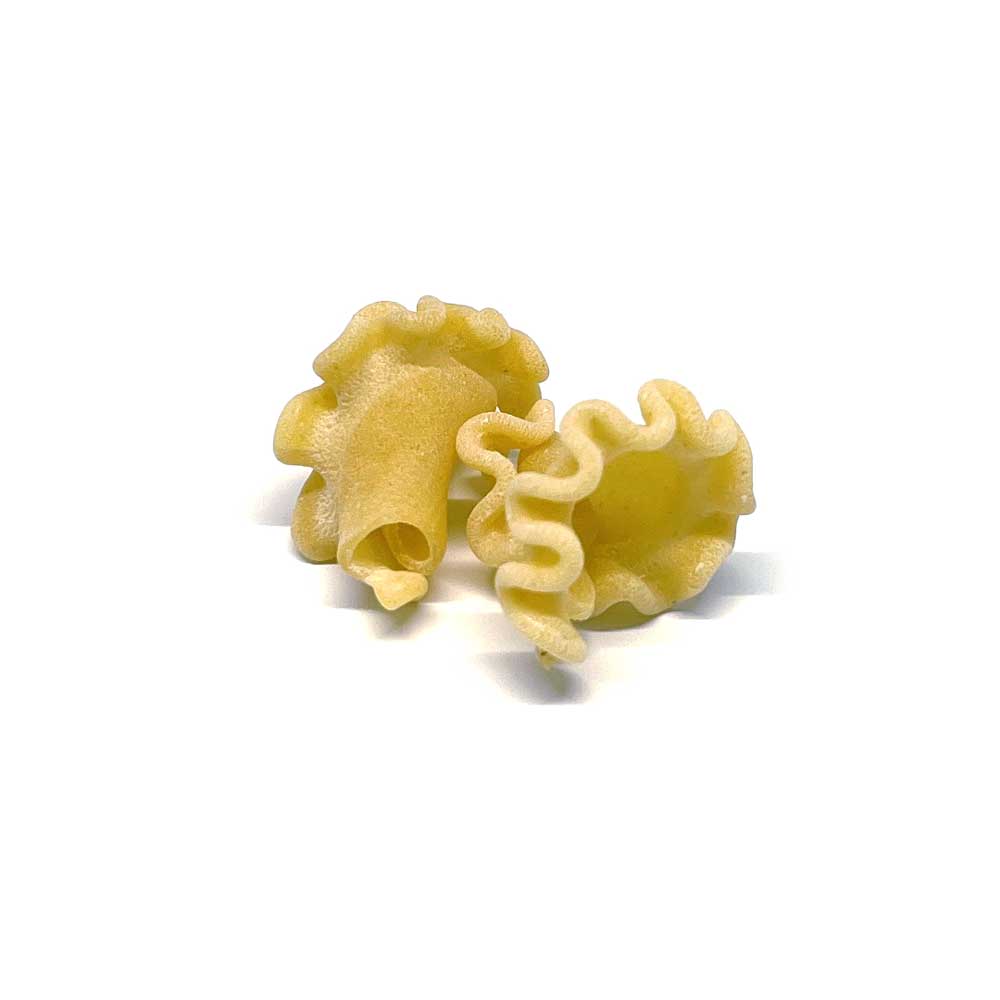 - Originally called Campanelle, which means “little bell” in Italian, Trumpets are a unique and visually appealing pasta shape. The ruffled edges and hollow center effortlessly capture everything from delicate sauces to rich, creamy concoctions, and even hearty ingredients like vegetables or meats. Celebrated for its versatility, the Trumpets charming shape and practical design continue to delight pasta enthusiasts and home cooks alike.